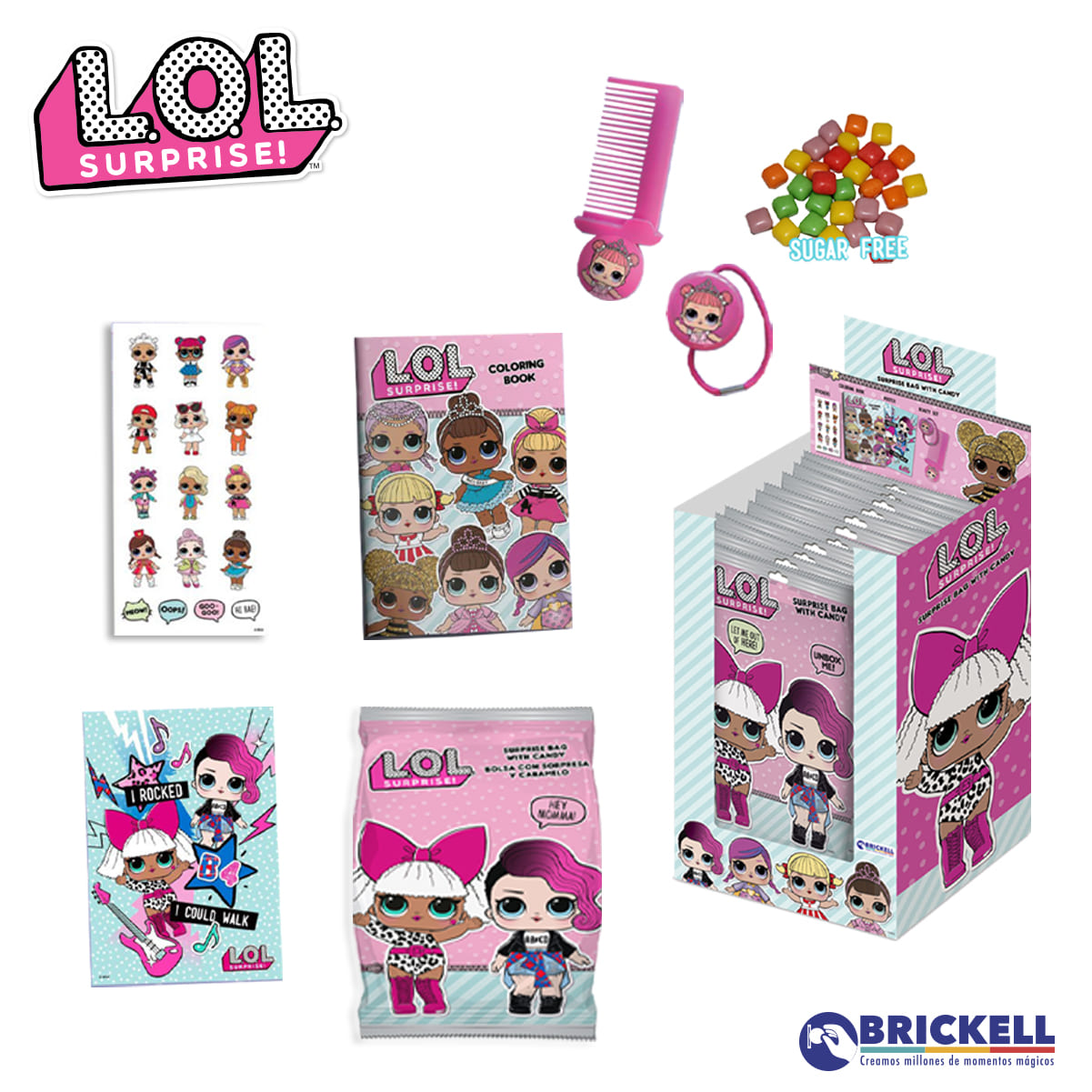 BOLSA SORPRESA LLENA DE SORPRESAS: LIBRO PARA COLOREAR + POSTER + PEINETA + ACCESORIOS + CARAMELOS MASTICABLES SIN AZUCAR