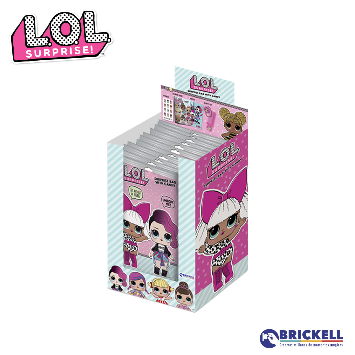 MINI BOLSA SORPESA CON GOMA DE BORRAR + STICKERS + CARAMELOS MASTICABLES SIN AZUCAR